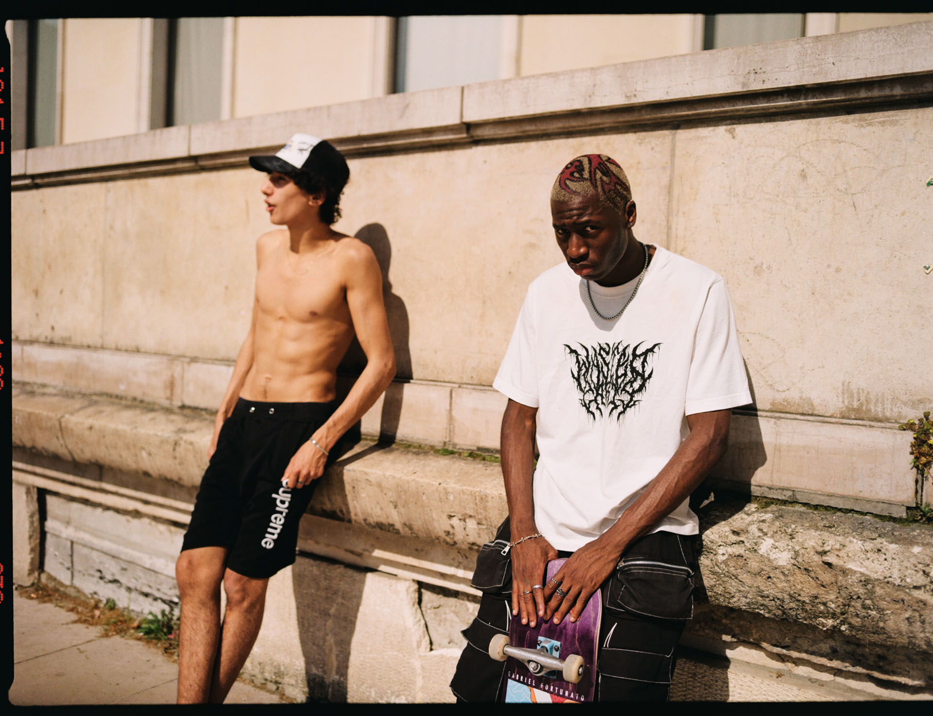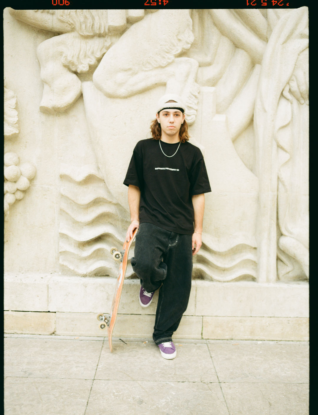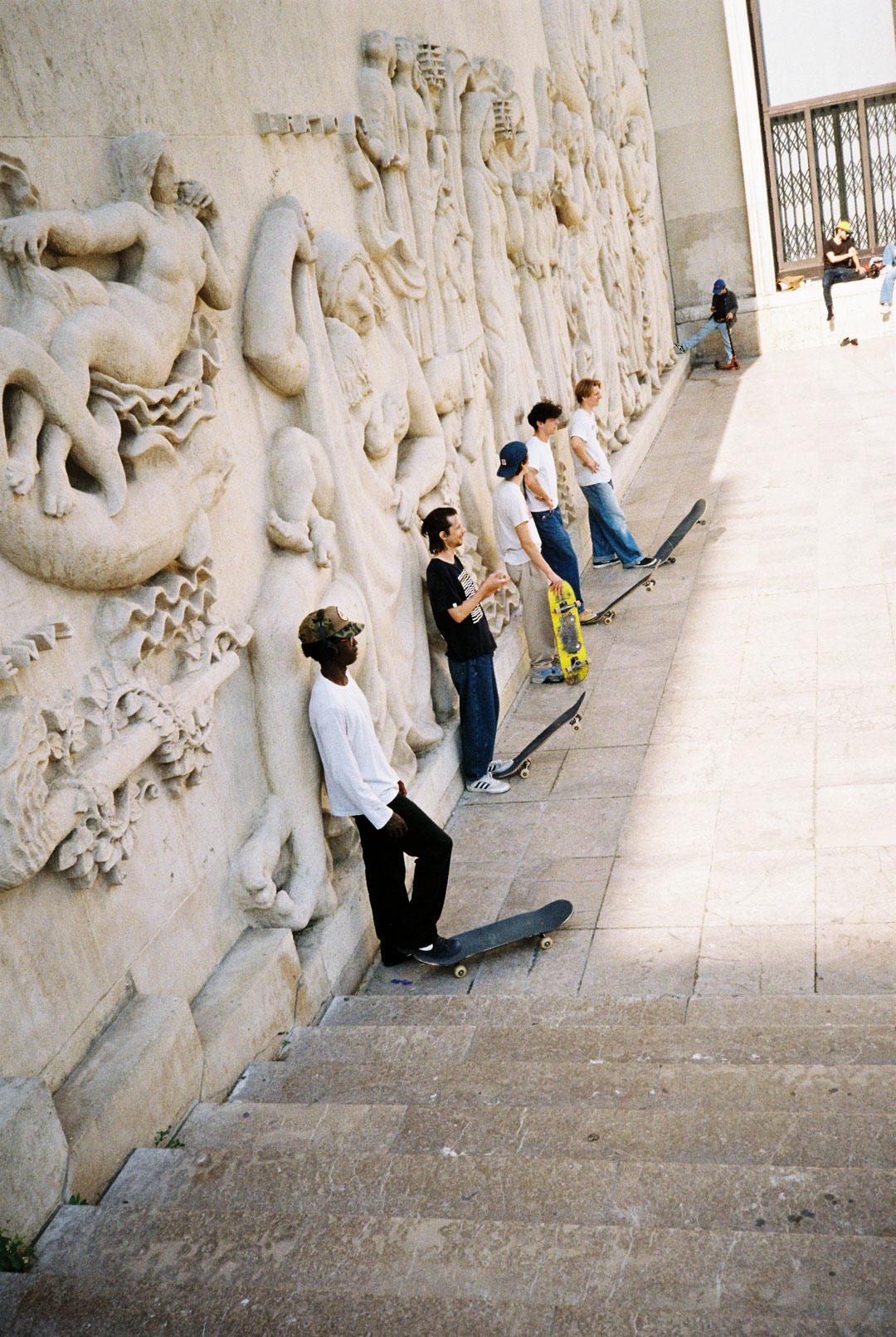 But just beneath that surface, in the open plaza below, a different scene unfolds — one that is raw, kinetic, and alive. Skateboarders gather daily from across Paris and beyond, drawn not by invitation but by atmosphere. They come for the unspoken promise of belonging.