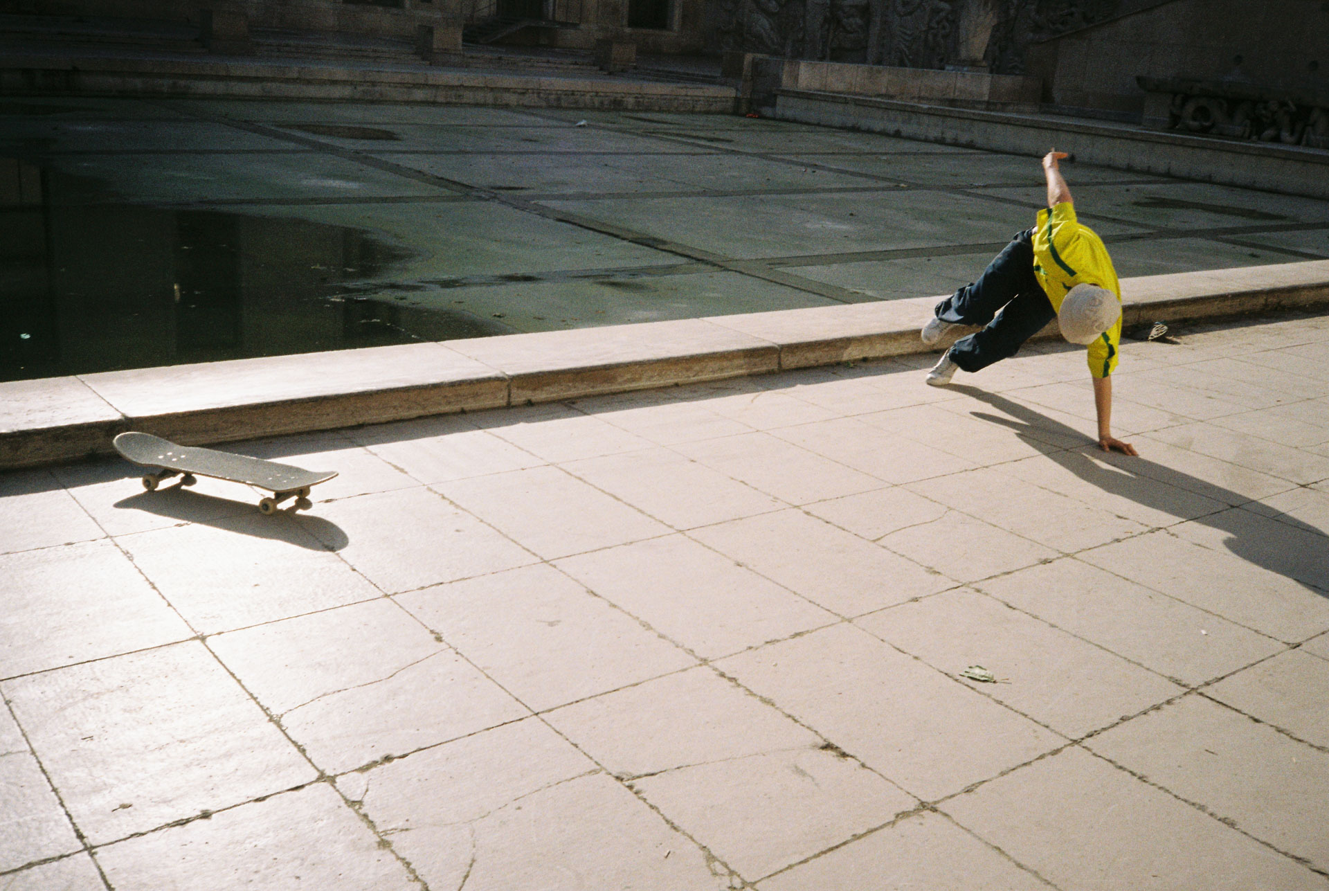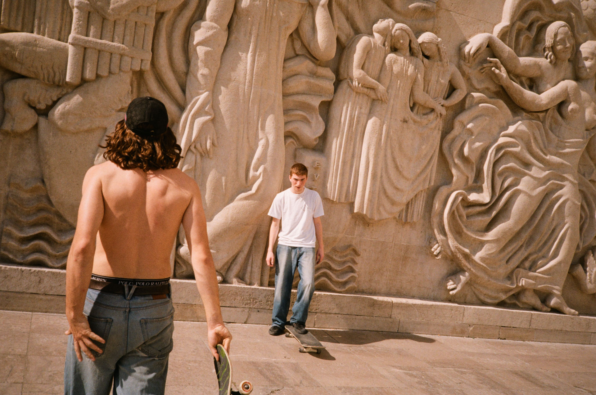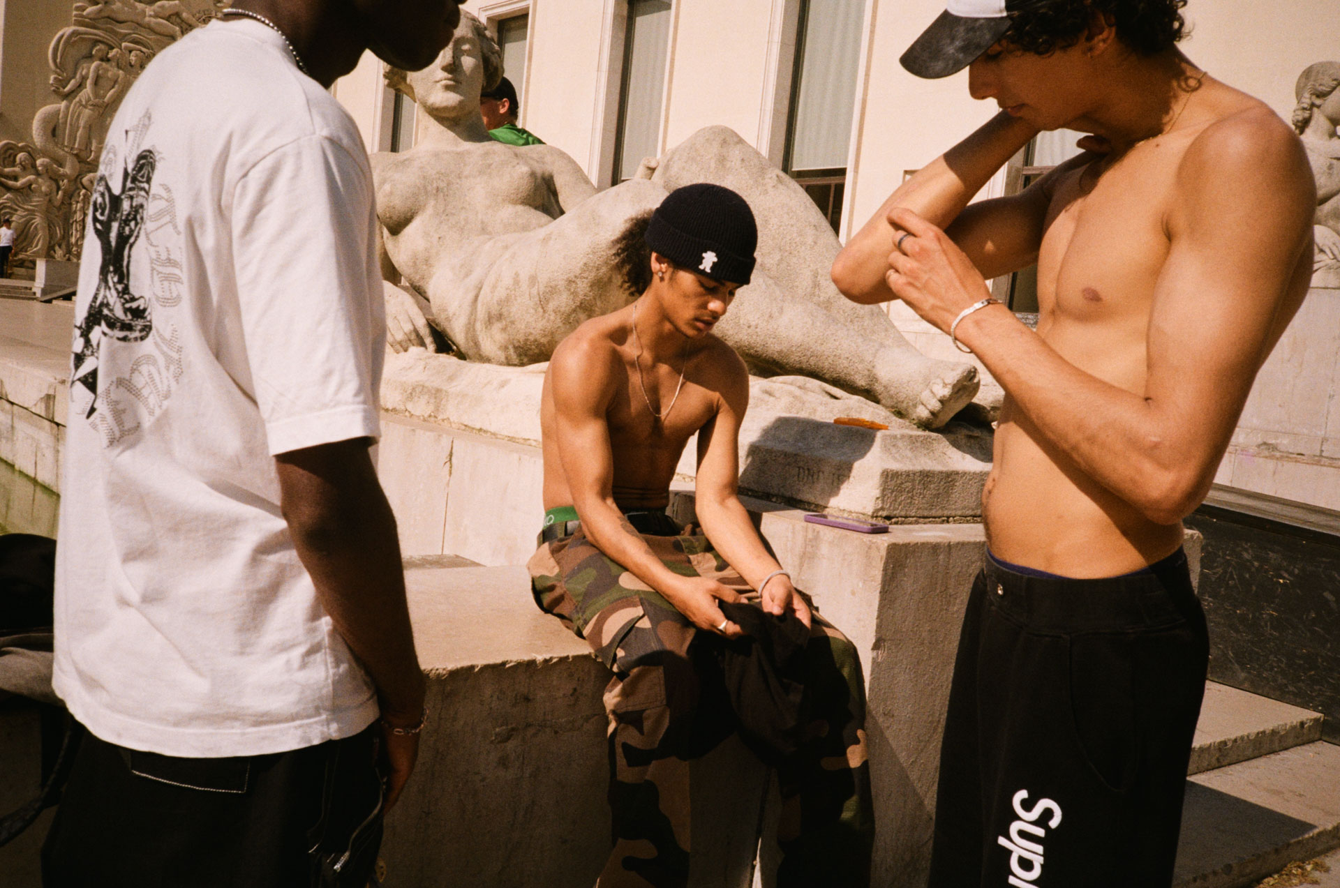 But just beneath that surface, in the open plaza below, a different scene unfolds — one that is raw, kinetic, and alive. Skateboarders gather daily from across Paris and beyond, drawn not by invitation but by atmosphere. They come for the unspoken promise of belonging.
