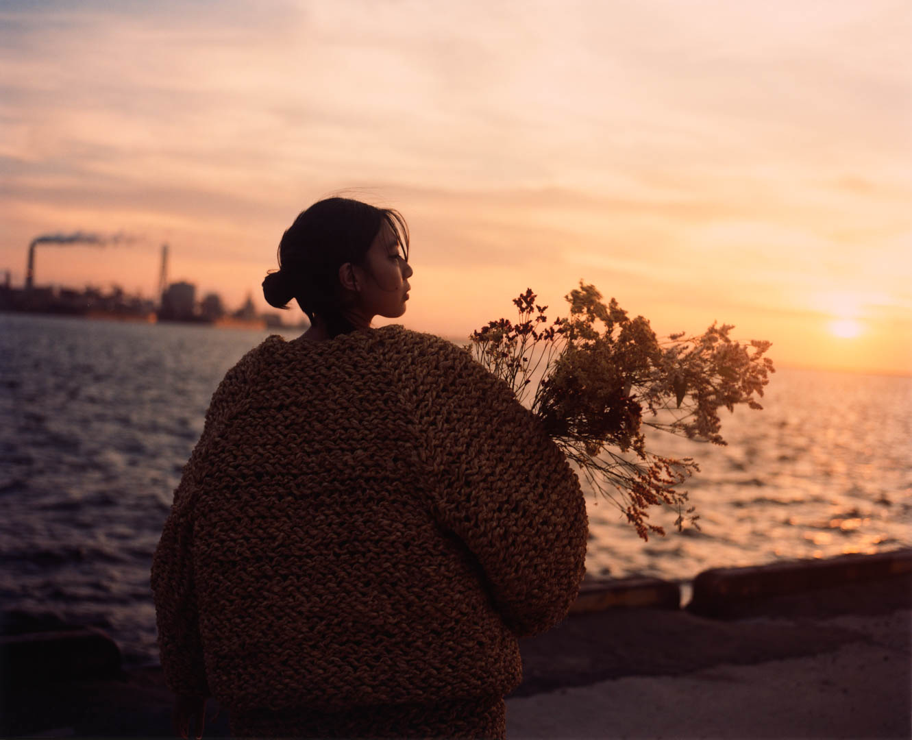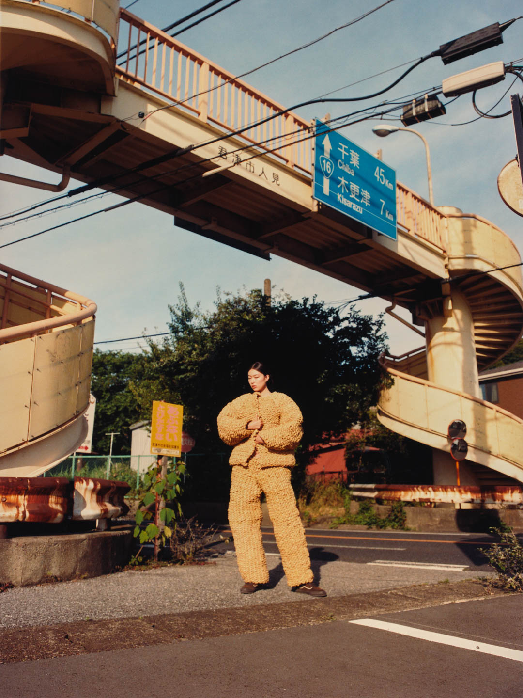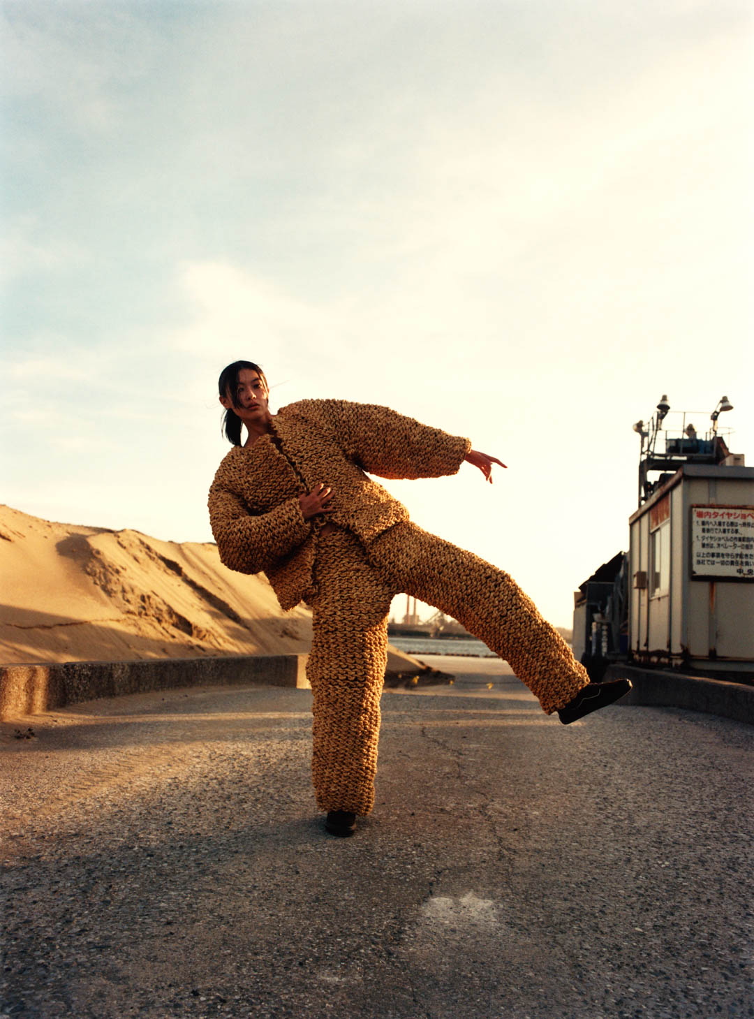 Soon, she leaves the land that shaped her. The silhouette sharpens, its softness giving way to resolve as she moves toward the industrial docks of Kawasaki.
