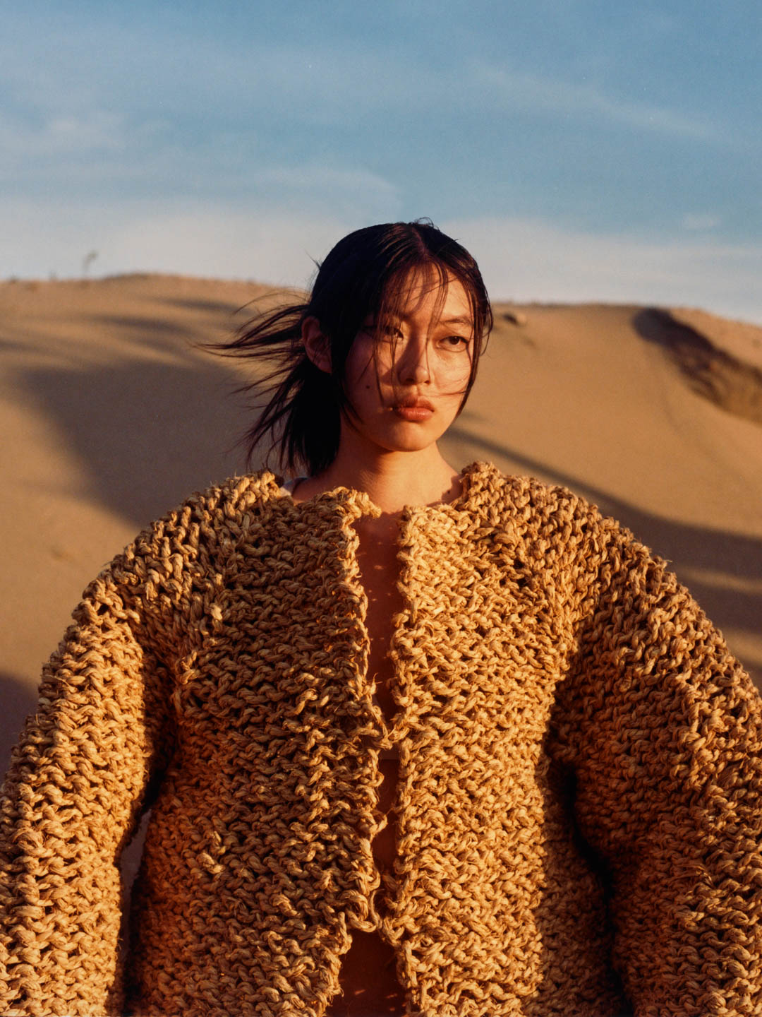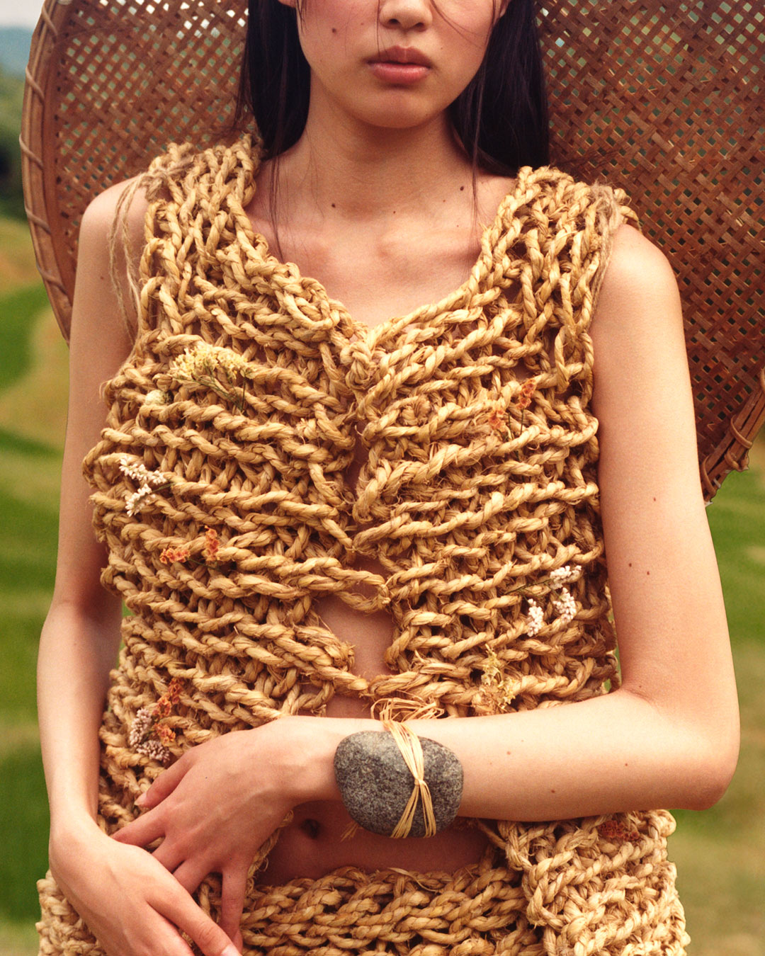 A photographic series created in collaboration by creative director Gala Espel with photographer Thomas Aulagner and Straft – a Japanese craft design studio – offers one such passage: the mino, a traditional rain cape woven from rice straw, reimagined as a contemporary silhouette.