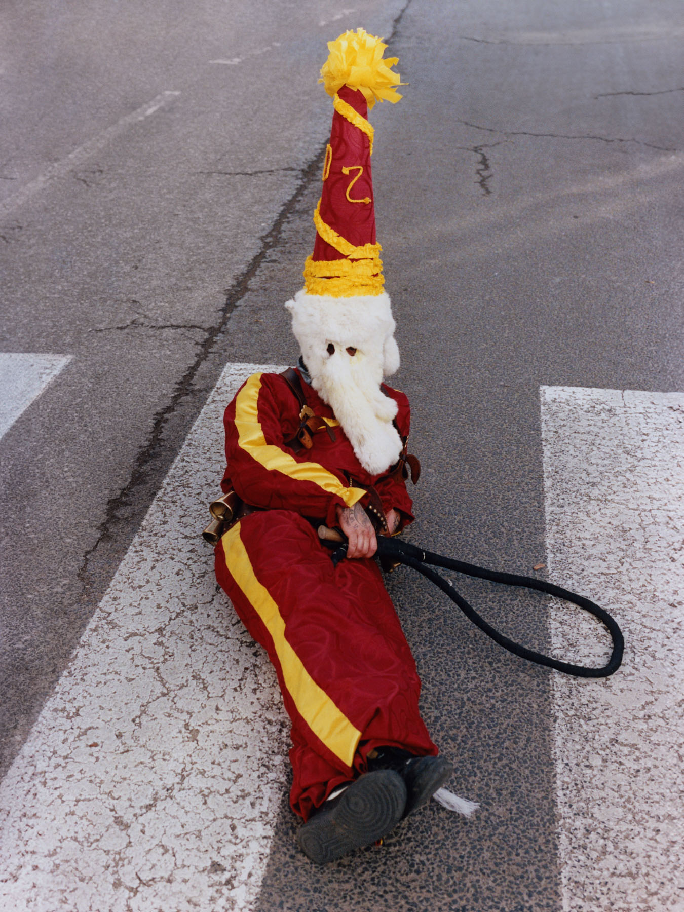 The costumes—once made of inside-out sheepskins and straw—are now carefully crafted, with increasing attention to detail and symbolism. Horses, for example, symbolize health, strength, and prosperity. Their movements, like the gestures and lines spoken by other characters, form a ritual narrative of endings and beginnings, of death and renewal.